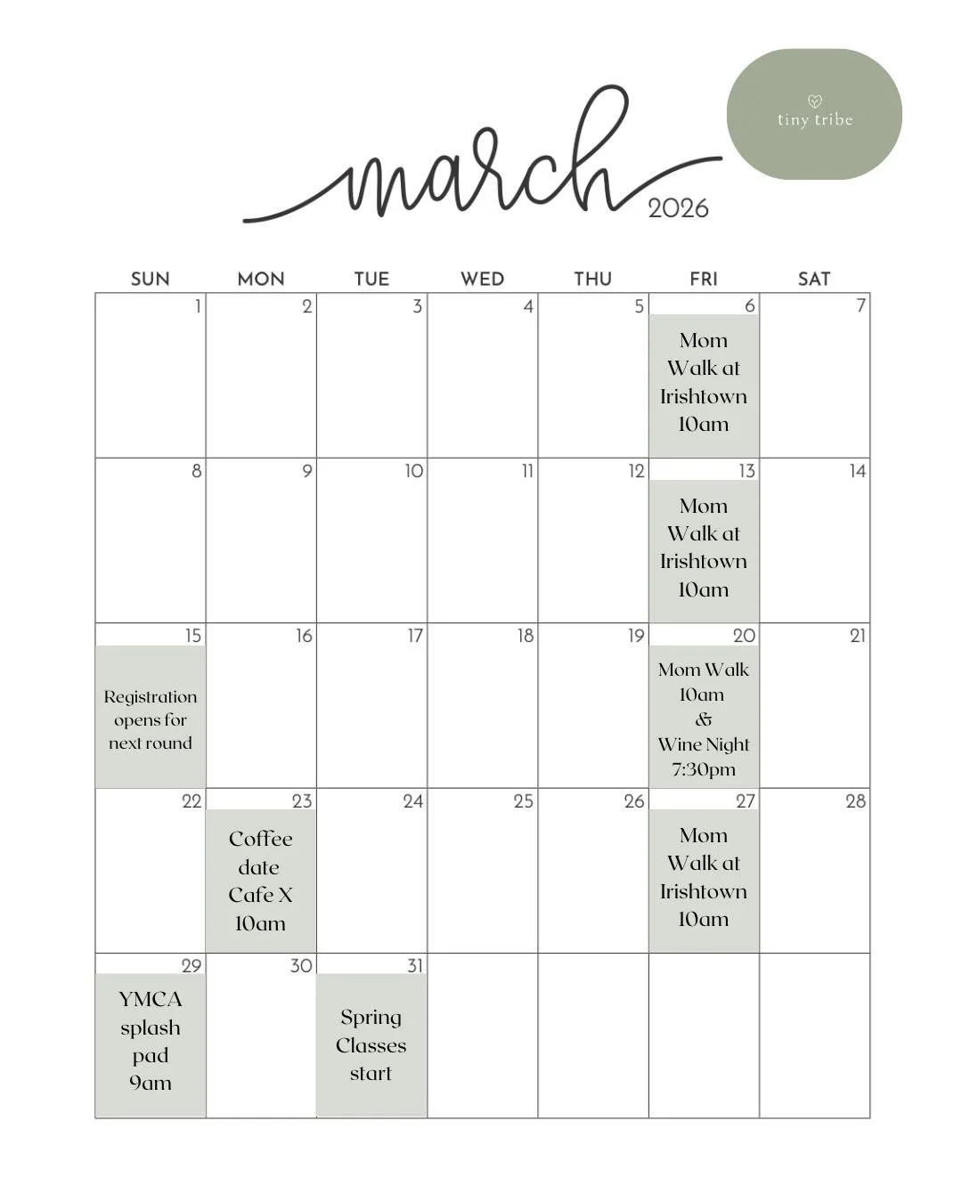 March Calendar of Events
